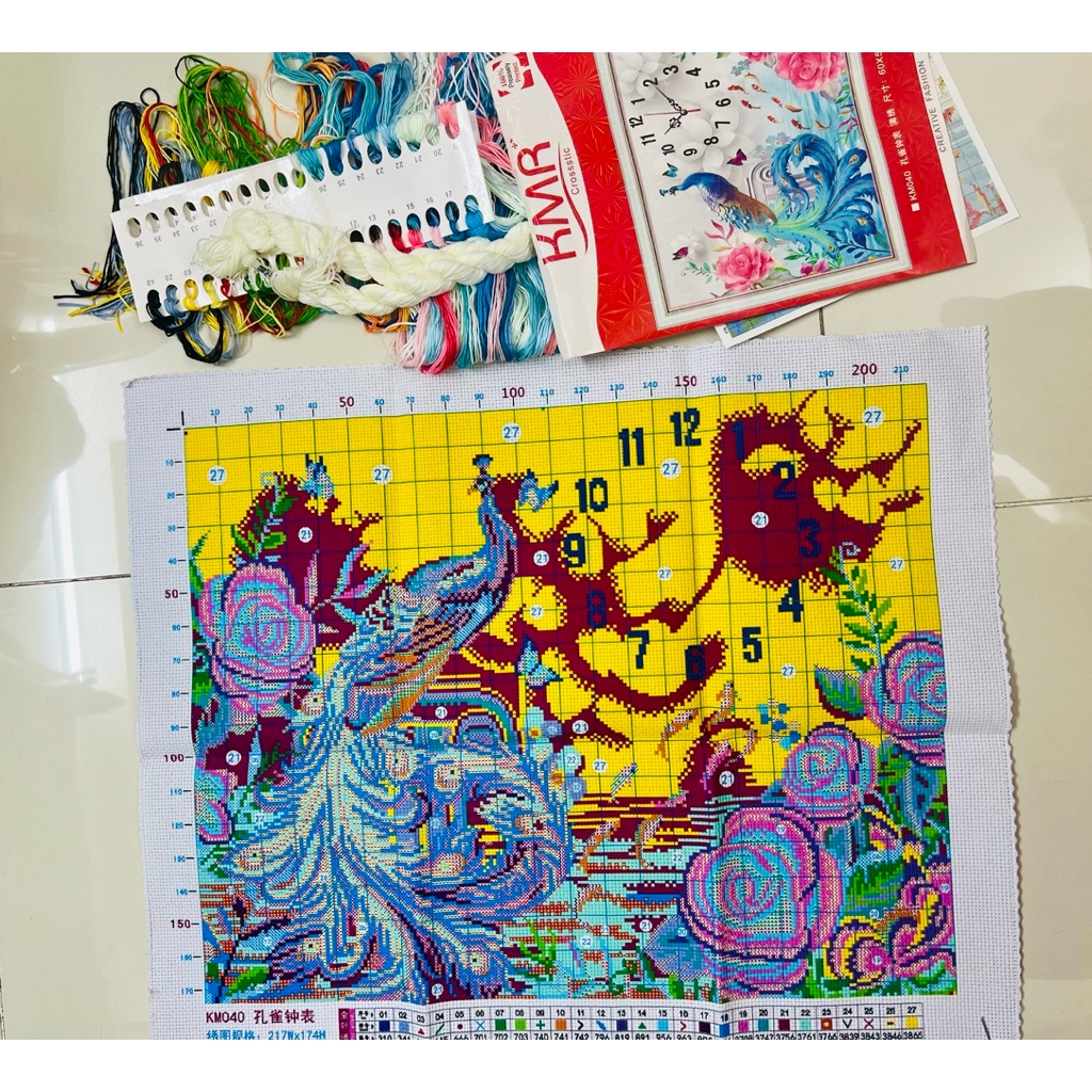 Sản phẩm tranh thêu bao gồm: 02 cây kim, chỉ thêu, vải thêu in các ký hiệu tương ứng với mã màu rất dễ thêu.