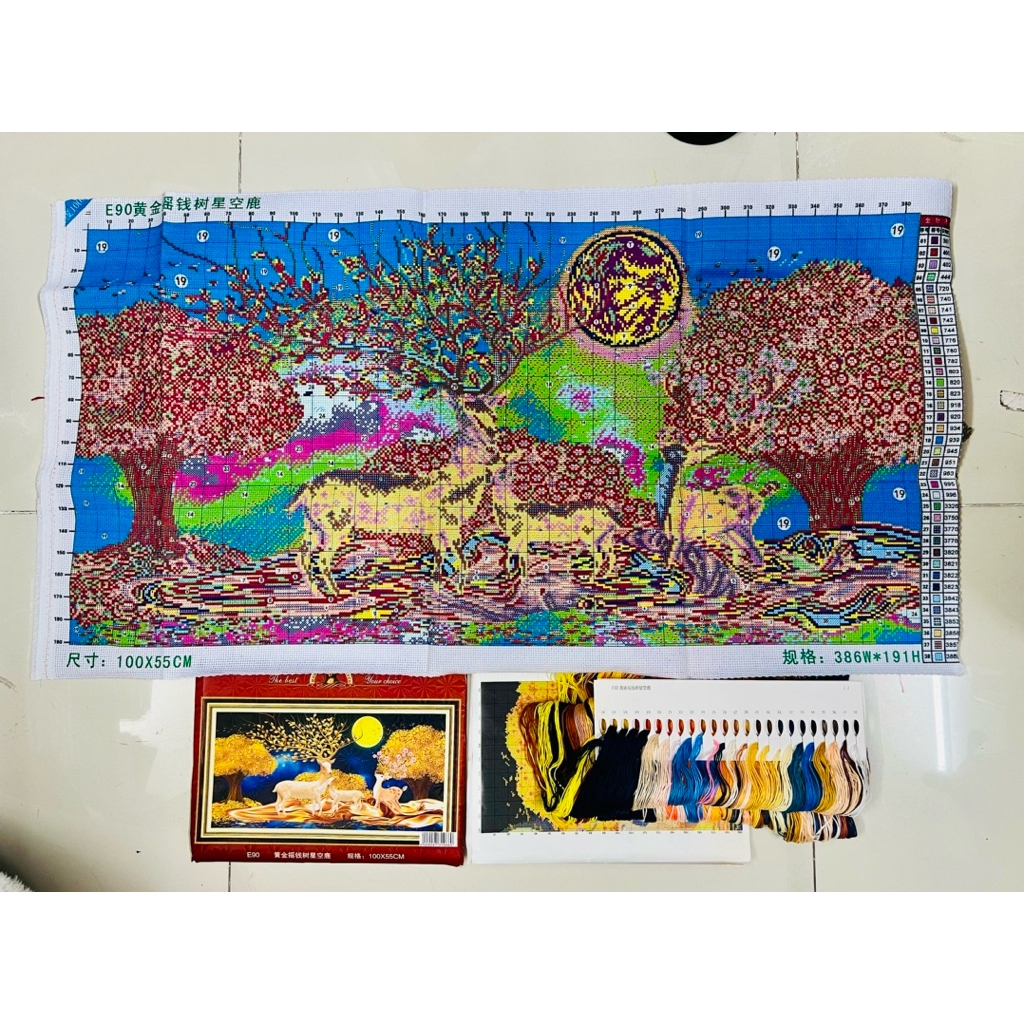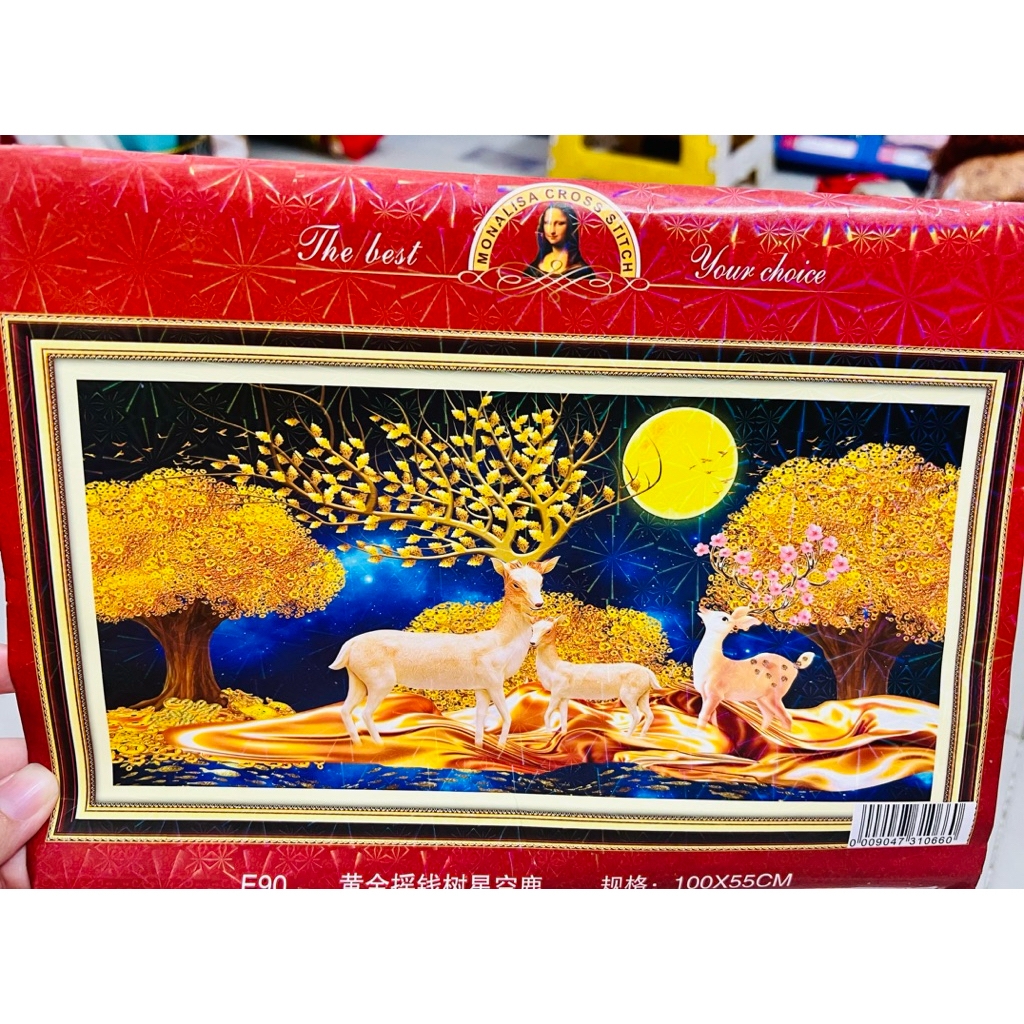 Tên tranh: Tranh thêu kín chữ thập Hươu tài lộc E90