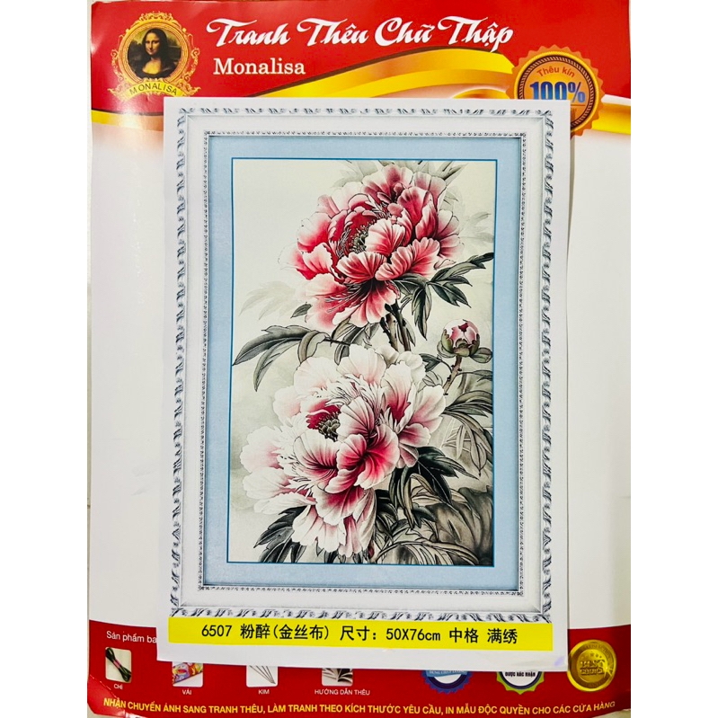 Tên tranh: Tranh thêu chữ thập Hoa mẫu đơn 6507