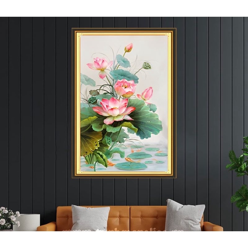 Tên tranh: Tranh thêu chữ thập Hoa sen E208
