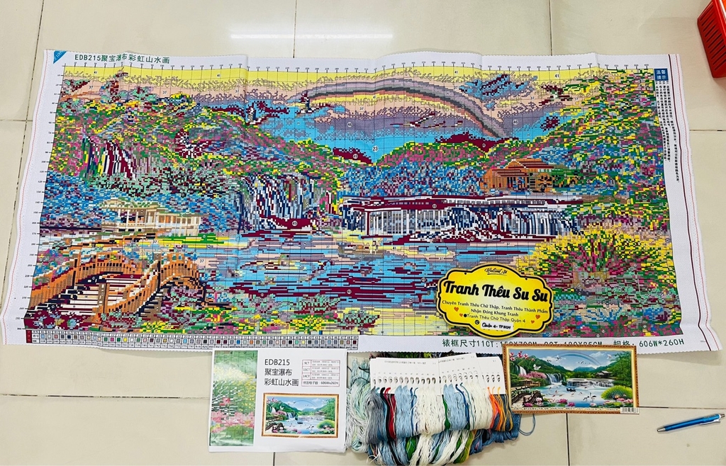 Tranh phong cảnh thêu kín Non nước hữu tình EDB215, kích thước 150 x 70 cm
