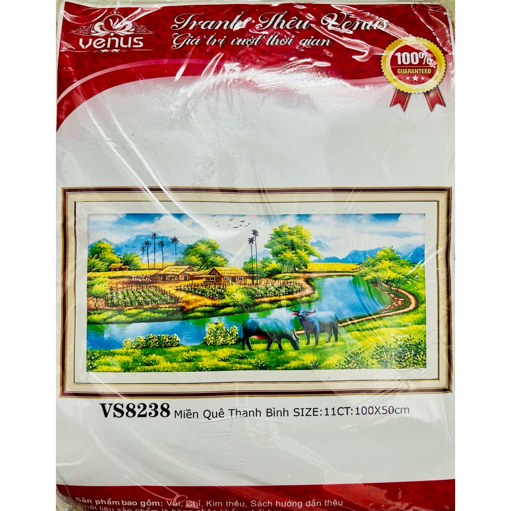 Sản phẩm tranh thêu bao gồm: 02 cây kim, chỉ thêu, vải thêu in các ký hiệu tương ứng với màu chỉ, rất dễ thêu.