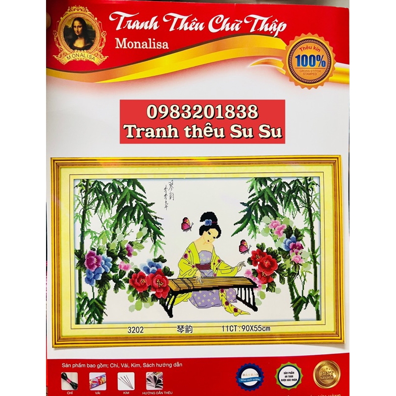 Tên tranh: Tranh thêu chữ thập Nàng tiên gãy đàn 3032 Thể loại: Tranh thêu chữ thập - sản phẩm này là tranh chưa thêu. Sản phẩm này là tranh nội địa trung chỉ và phôi đẹp. Vị trí khách cần thêu trên tranh: thêu hết các ký hiệu, nền trắng không thêu. Kích thước: 90 x 55cm Không gian treo tranh thích hợp: Phòng khách, phòng làm việc............ Sản phẩm tranh thêu bao gồm: 02 cây kim, chỉ thêu, vải thêu in các ký hiệu tương ứng với mã màu rất dễ thêu. Ngoài ra, khách hàng chưa biết thêu có thể nhắn tin riêng với shop để được hướng dẫn cụ thể về cách thêu và các đặc tính tranh thêu. Shop bán đầy đủ các dụng cụ và phụ kiện thêu tranh như: Chỉ thêu lẻ theo tép, kim thêu, khung thêu, kéo, xỏ chỉ, sáp vuốt chỉ, kẹp nhựa, kẹp sắt…. hcm. Khách muốn mua hàng trực tiếp vui lòng đến sau 6h chiều mỗi ngày.