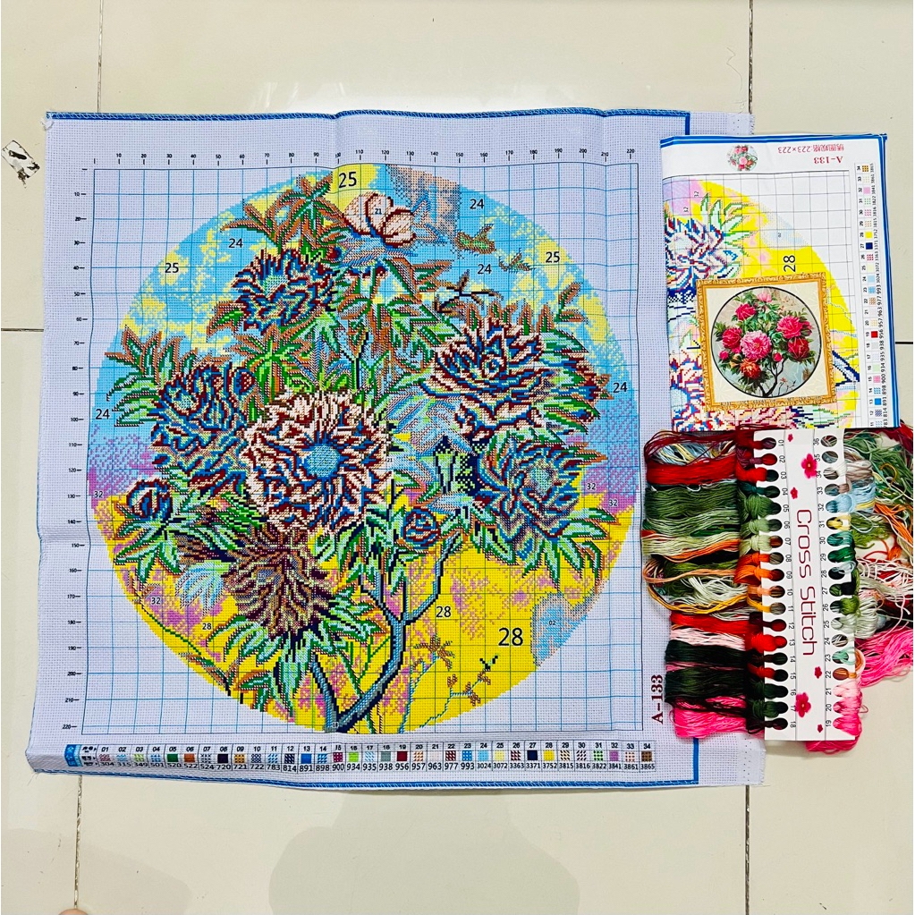 Tên tranh: Tranh thêu chữ thập Hoa mẫu đơn A133
