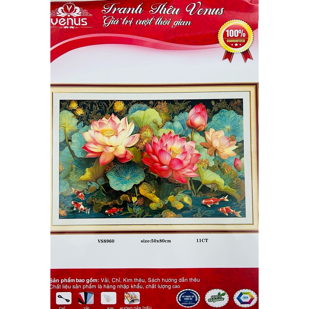 Tranh thêu của hãng Venus màu sắc tươi sáng, chỉ đẹp, vải đẹp in ký hiệu rõ.