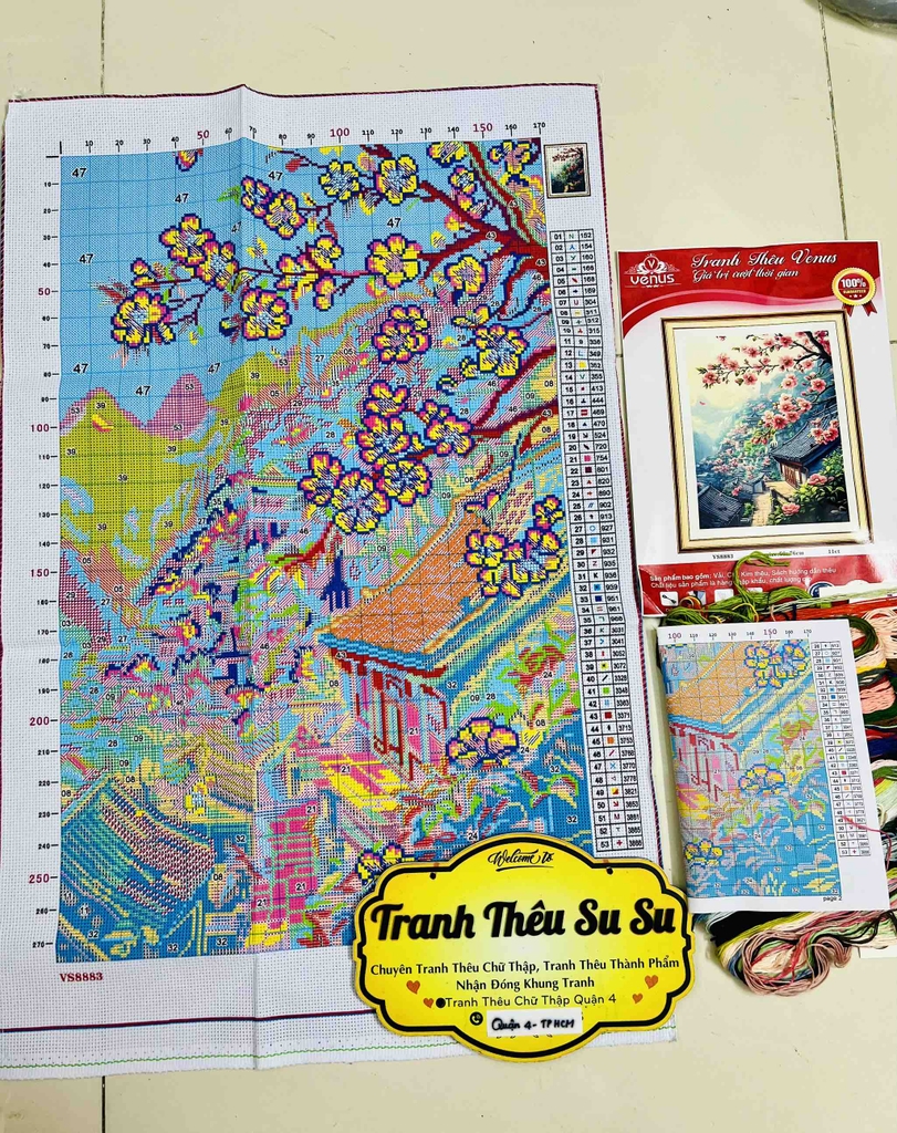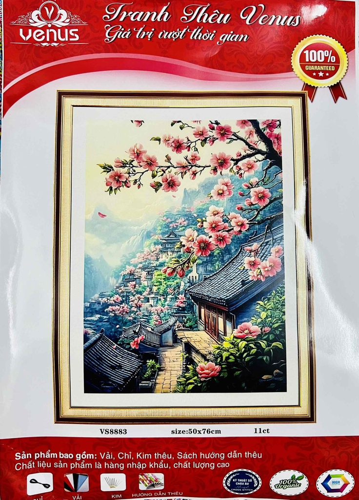 Tranh thêu của hãng Venus màu sắc tươi sáng, chỉ đẹp, vải đẹp in ký hiệu rõ.
