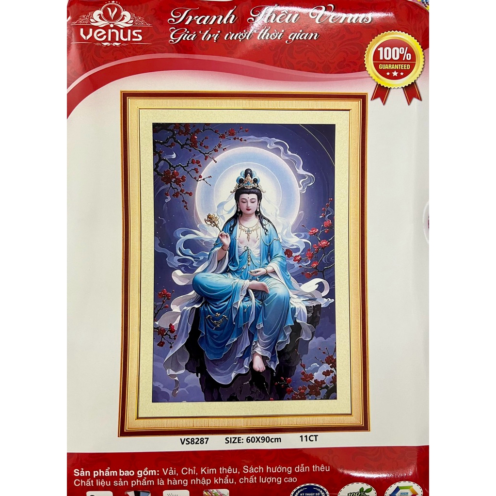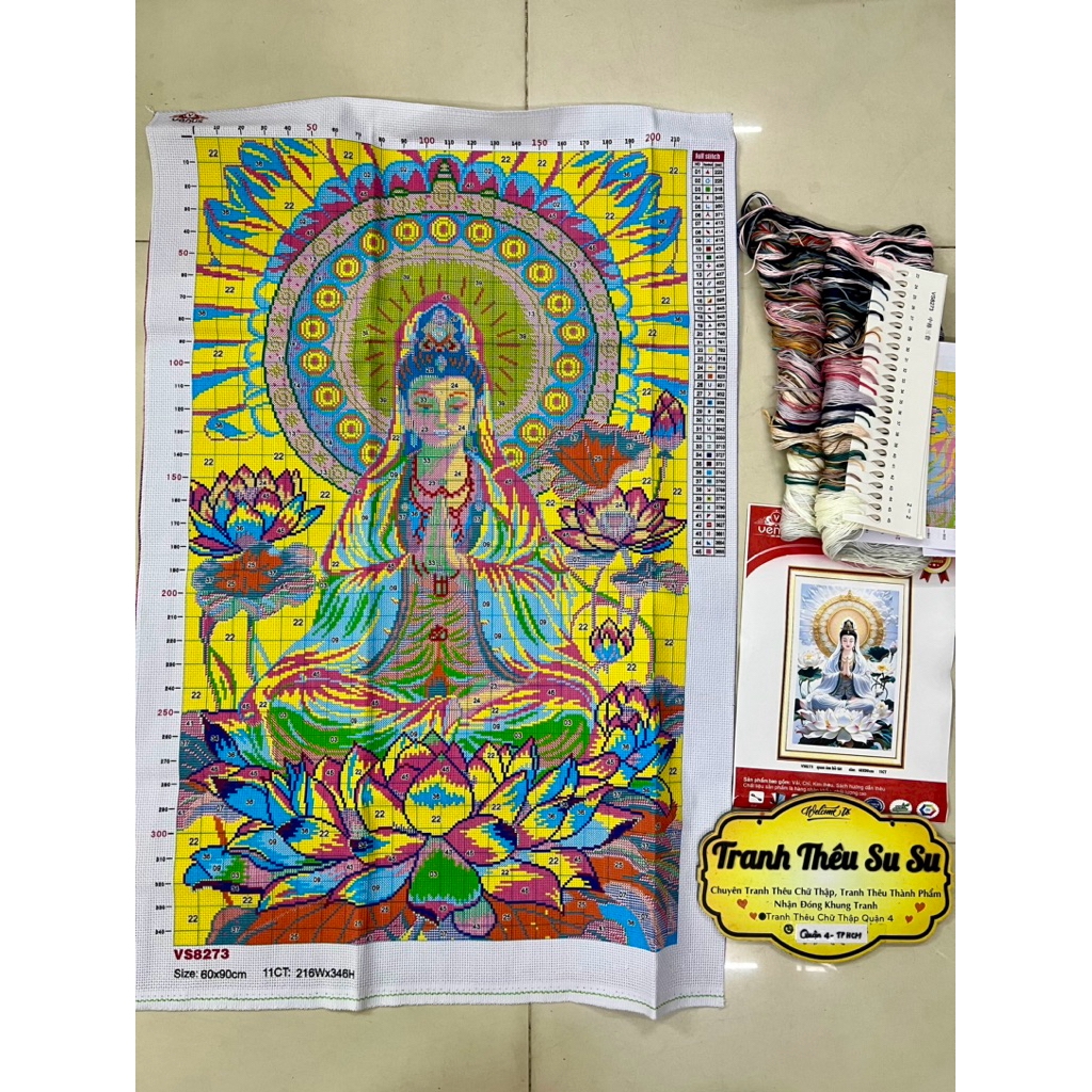 Tên tranh: Tranh thêu chữ thập phật quan âm (thêu kín)