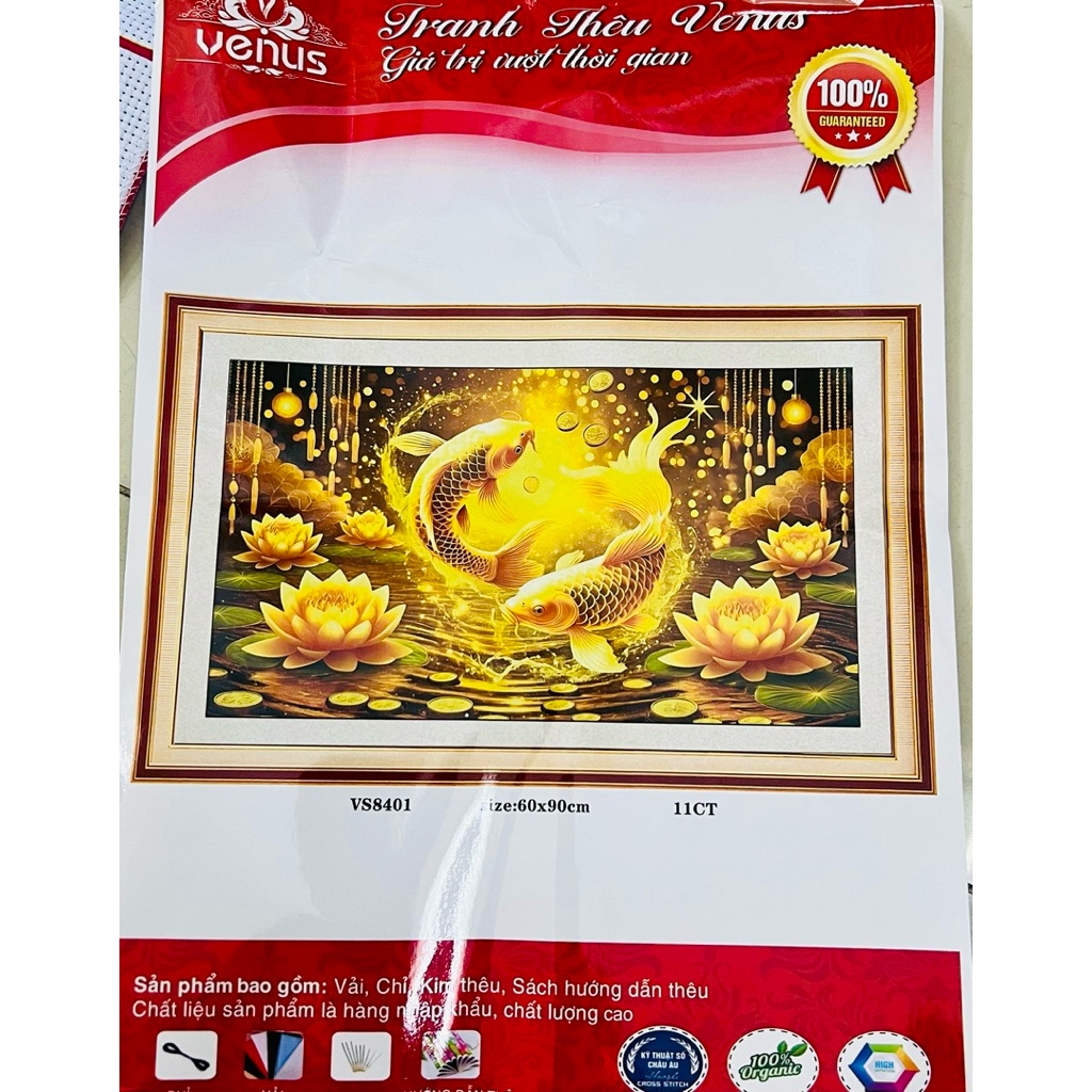 Sản phẩm tranh thêu bao gồm: 02 cây kim, chỉ thêu, chart thêu, vải thêu in các ký hiệu tương ứng với mã màu rất dễ thêu.