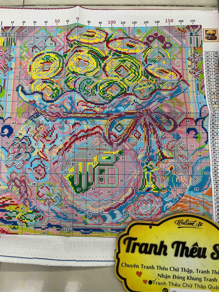 Tranh thêu kín Túi tiền chữ Phúc VS9086, kích thước 50 x 50 cm