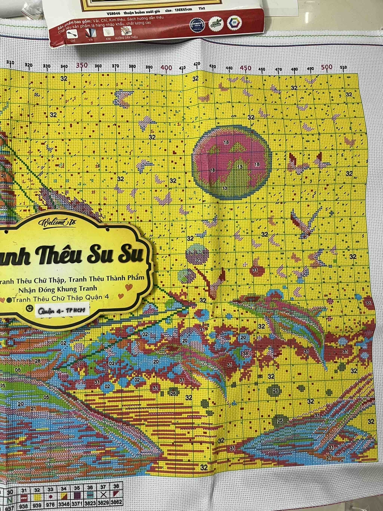Phần khách cần thêu trên tranh: thêu kín bức tranh.